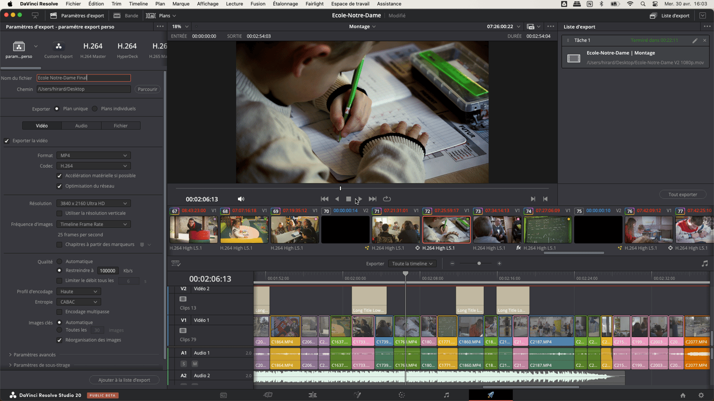 Export final de la vidéo dans les formats convenus (ex : MP4, formats réseaux sociaux…).